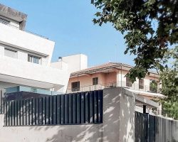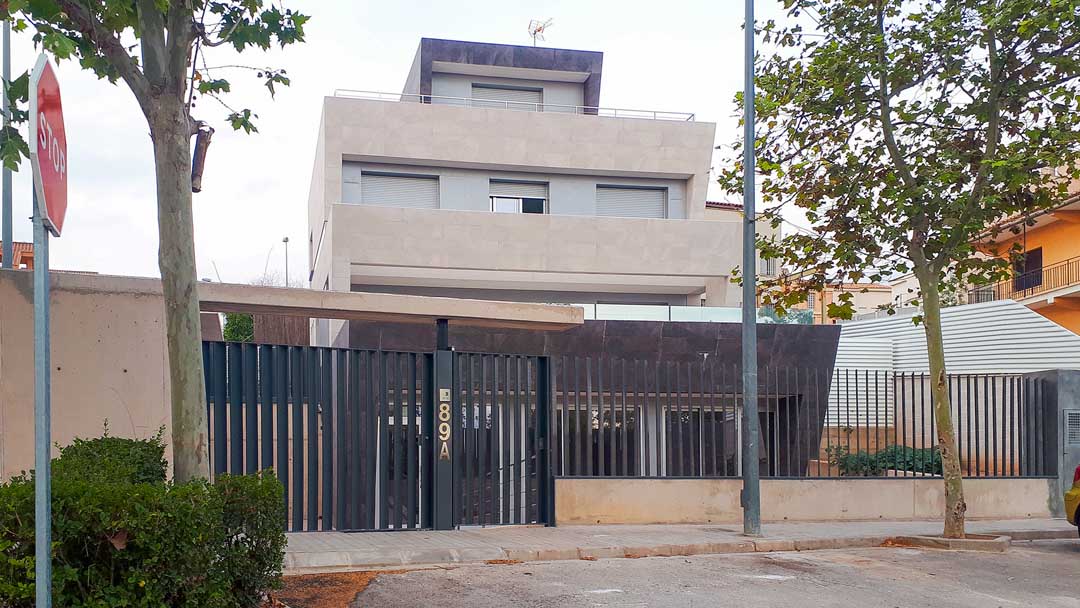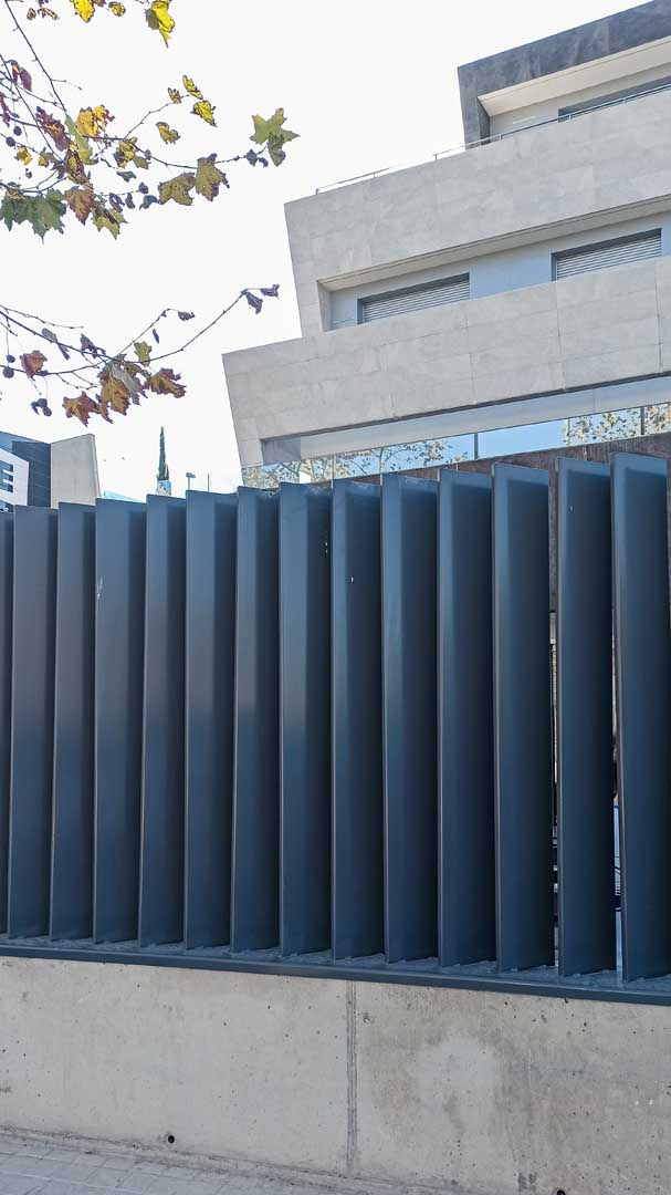 La vivienda se desarrolla en plantas sobre rasante claramente reconocibles, reservando las aperturas principales a las orientaciones más favorables, mientras que las fachadas más expuestas se resuelven de forma más contenida, reforzando la sensación de recogimiento interior. El cerramiento perimetral y los elementos verticales de protección visual completan esta idea de transición, estableciendo un paso gradual entre el espacio público y el ámbito doméstico.