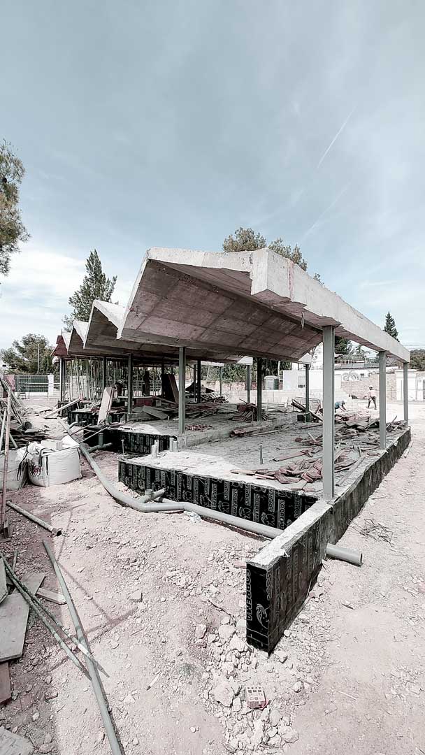 Los desniveles naturales de la parcela se aprovechan para generar un recorrido perimetral continuo y accesible, mediante rampas que envuelven el edificio en un circuito de 360º. Este recorrido invita a pasear, correr y explorar, convirtiéndose en una extensión del aprendizaje y el juego. Se diferencian dos circulaciones: la de llegada, que conduce directamente a cada aula, y la de salida, vinculada a los patios exteriores, concebidos como un gran espacio común articulado por niveles, pero visualmente continuo y compartido.