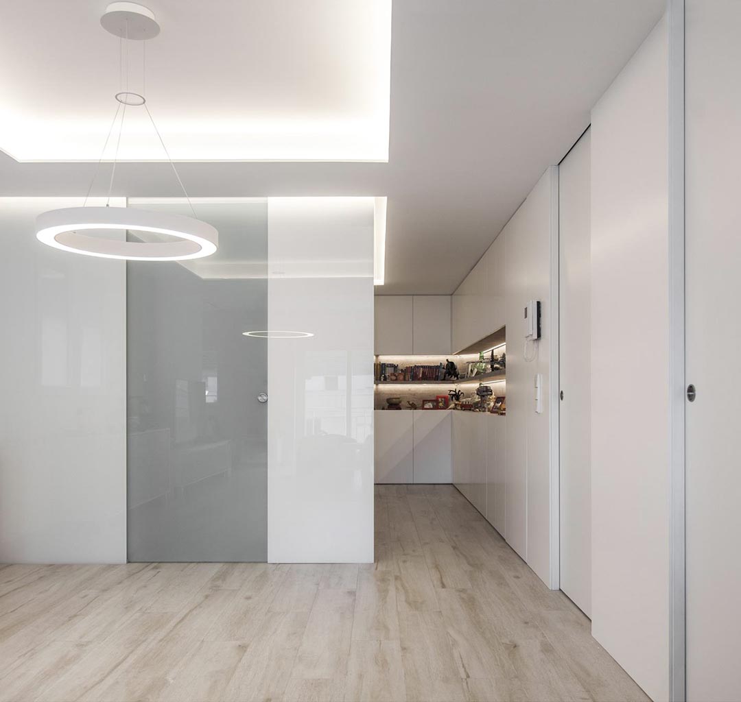Esta reforma reordena una vivienda existente de geometría compleja para adaptarla a un uso contemporáneo, luminoso y flexible. La intervención apuesta por la continuidad espacial, la integración del mobiliario a medida y una materialidad sobria, donde luz, detalle y ejecución cuidadosa construyen una atmósfera serena y doméstica, plenamente ajustada a las necesidades del cliente.