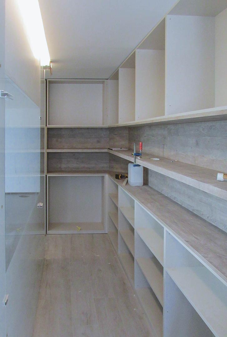 Los baños y espacios de servicio se resuelven con el mismo criterio de claridad y cuidado del detalle, prestando especial atención a la iluminación indirecta, la elección de revestimientos y la precisión en la ejecución. El resultado es una vivienda equilibrada, funcional y luminosa, donde arquitectura e interiorismo se funden en una intervención coherente y duradera.